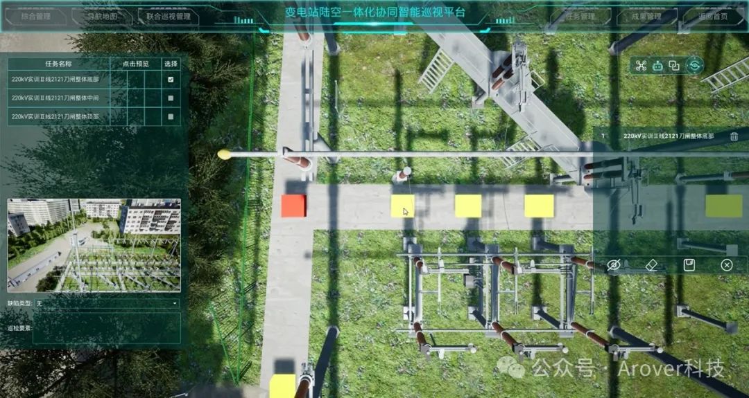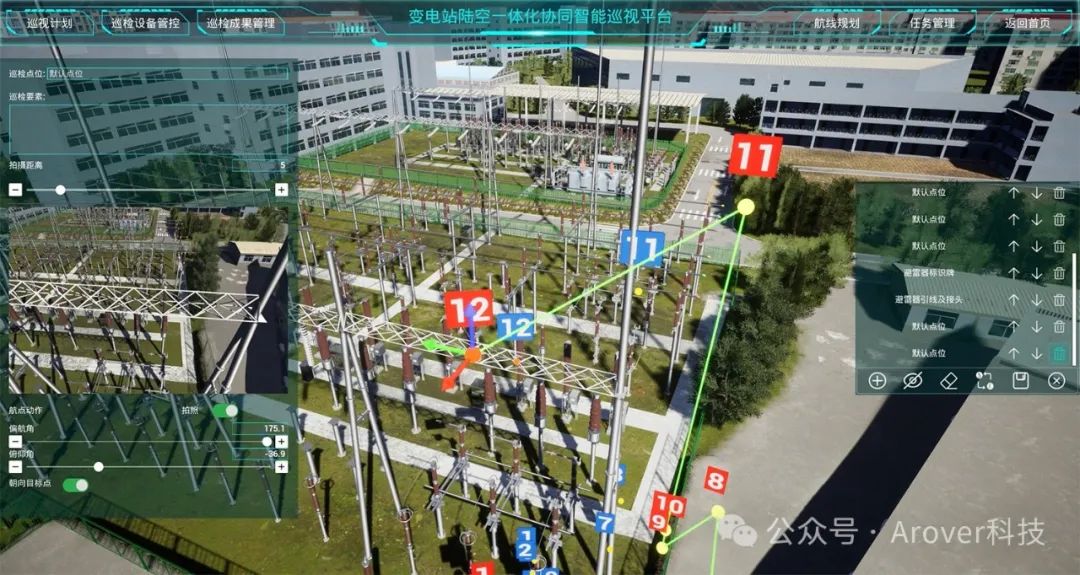 平台结合三维场景完成巡检路径安全性校验,规避站内重度电磁干扰区及重要设备区域,支持陆空一体化协同巡检路径生成、无线上传与站内设备巡检。