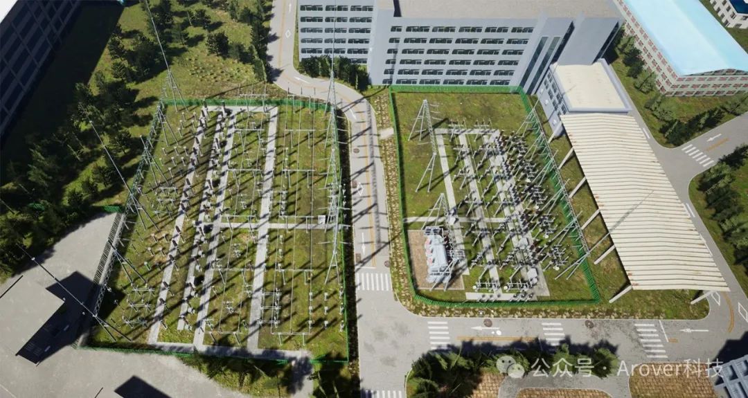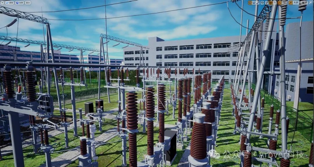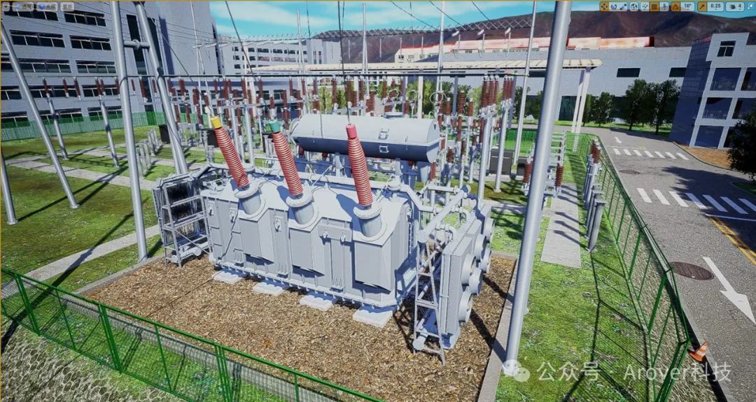 平台使用3A级UE引擎打造逼真变电站无人机飞行仿真训练场景,对变电站电气设备进行精细化1:1建模,建立三维地理坐标系,准确定位各设备空间位置。