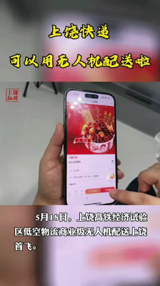 “20分钟前点的外卖现在就送到了,非常开心。”作为第一个体验上饶无人机快递的市民张先生欣喜地说到。