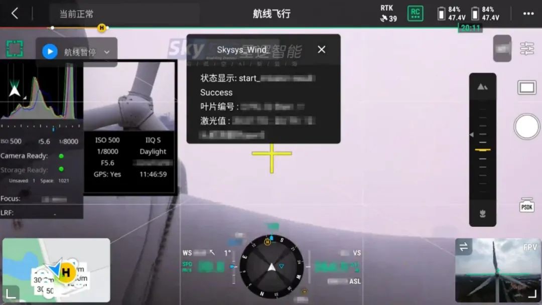 通过搭载自研的SkyCab天斗机载AI模块维持无人机飞行的稳定性,确保无人机对叶片上的细节能够进行有效拍摄、准确记录、精准识别。