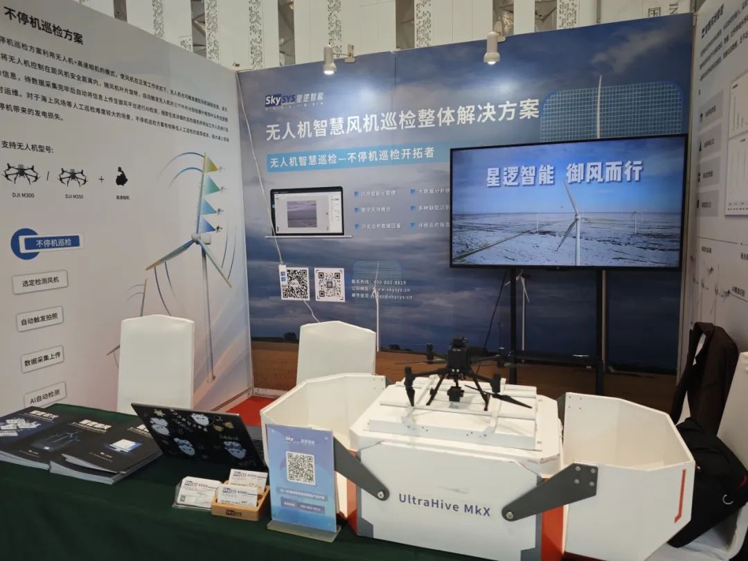 星逻智能携星逻御风无人机风机AI巡检系统亮相本次会议,星逻团队同与会人员积极交流,一同探讨无人机智慧风机巡检模式,以无人机停机与不停机技术为风电场智慧运维的发展带来空中解决方案。