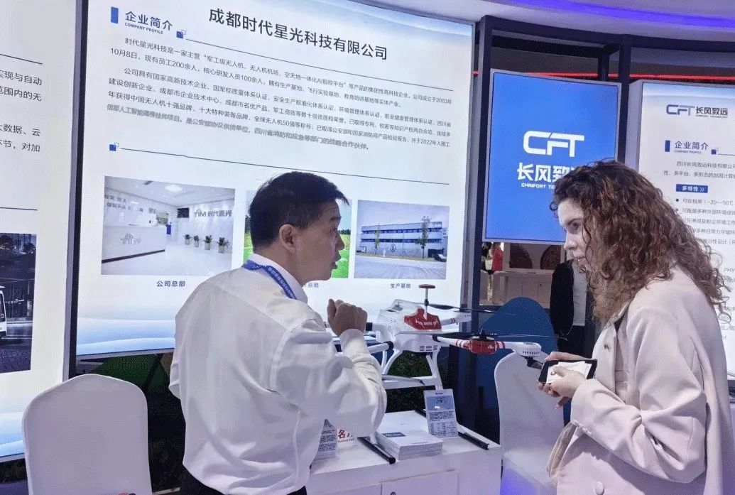 时代星光作为智能制造的领军企业,携全栈自研战狼军工级无人机、车载式智能无人机机场等多款产品,以及空天地一体化AI指控系统解决方案亮相展会现场,共同研讨智能制造前沿技术。