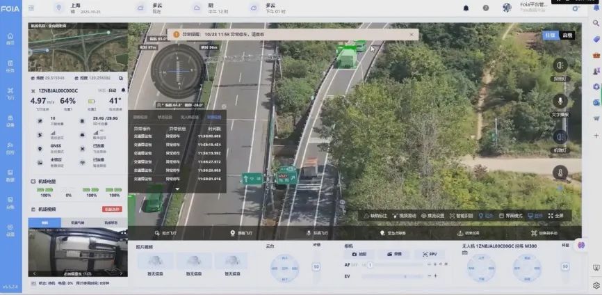 飞行控制:对于识别的异常结果,根据管理人员的需求执行精确的飞行动作,包括快速响应识别结果,进行悬停、上升、下降或改变飞行方向等。同时复亚智能还开发了围绕特定目标指点、环绕飞行,以便掌握更多目标详细信息。