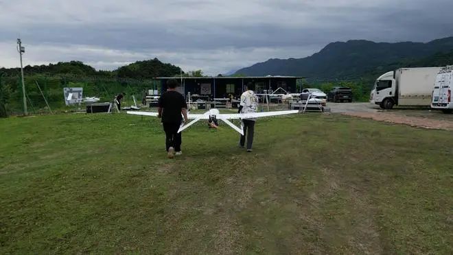 30日下午,基地中央宽阔平坦的起降区内,不同型号的无人机正准备起飞;操作员们手持遥控器,专注地进行着最后的检查与调试工作。