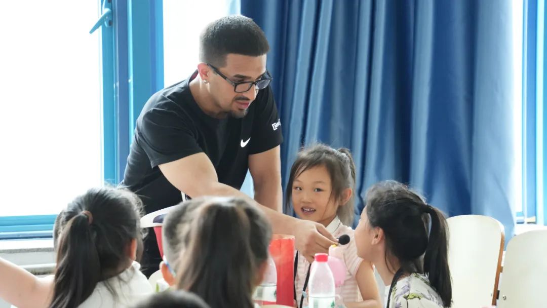 航模制作完成后,孩子们与国际航模队的留学生进行了交流互动。孩子们纷纷举手,勇敢而自信的用英语沟通。虽然是一些简单的对话,但充分体现出他们独立的思想、求知的精神、友善的性格。
