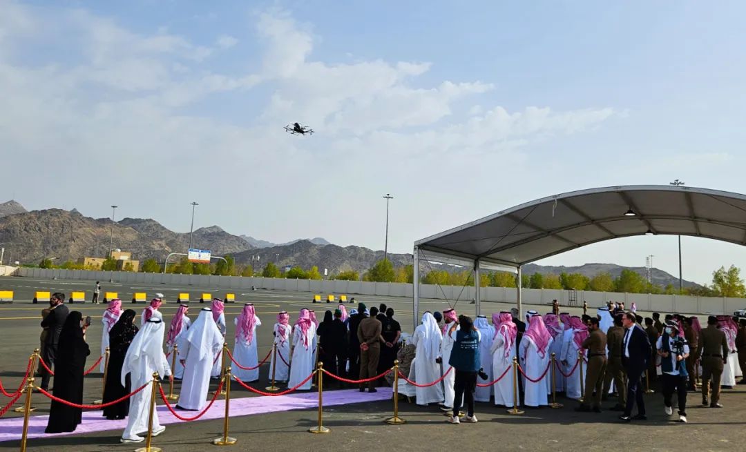 图:受邀政府官员、嘉宾及媒体记者在圣城麦加现场见证EH216-S无人驾驶电动垂直起降航空器的沙特阿拉伯首飞