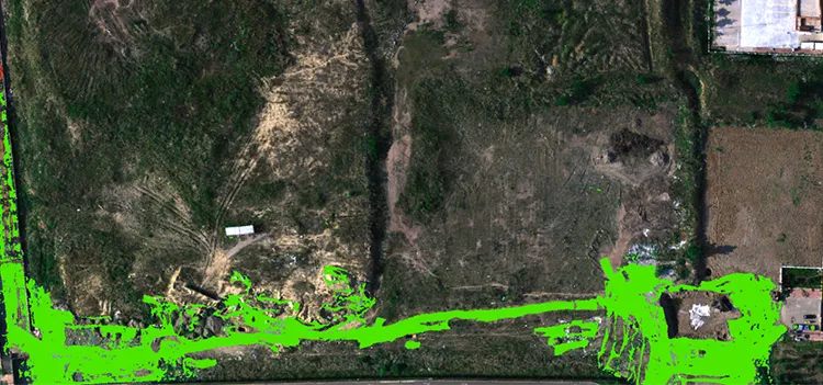 城建防尘网是城市环境调查与建筑施工监督的重要监测对象,未开发或待建设土地均需遵循城市建设要求合规覆盖绿色防尘网,对于防尘网破损、覆盖不全的情况需及时整改。AQ300 Pro同时具备可见光-近红外波段与SWIR短波红外波段,通过获取更丰富的目标信息,可提升对防尘网覆盖调查的便捷性与准确性。