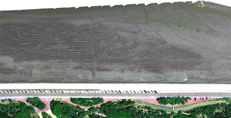 【1】获取滩涂湿地多源遥感数据,航高100m,其中可见光-近红外多光谱分辨率约5cm,SWIR约10cm,LWIR约10cm,通过可见光影像可明显看到湿地中有车辙破坏湿地的情况。