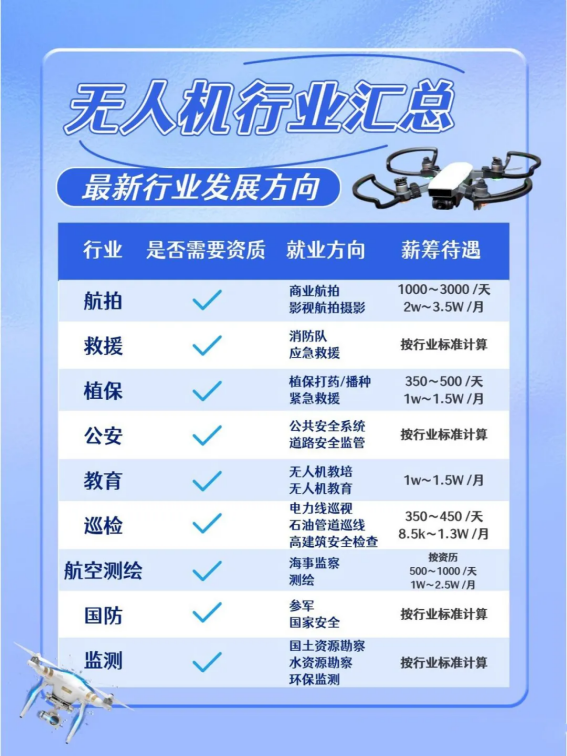 随着科技的飞速发展,低空经济正成为一股不可忽视的力量,而无人机作为其中的佼佼者,更是引领着这场空中革命。中国人社局更是将无人机驾驶员发布为十五个新职业之一。中国无人机驾驶员的缺口更是高达100万。随着无人机技术的快速发展和应用领域的不断拓宽,无人机驾驶员的需求量持续增加。然而,由于无人机操作技术较为复杂,相关专业人才供不应求,导致无人机驾驶员的缺口日益凸显。