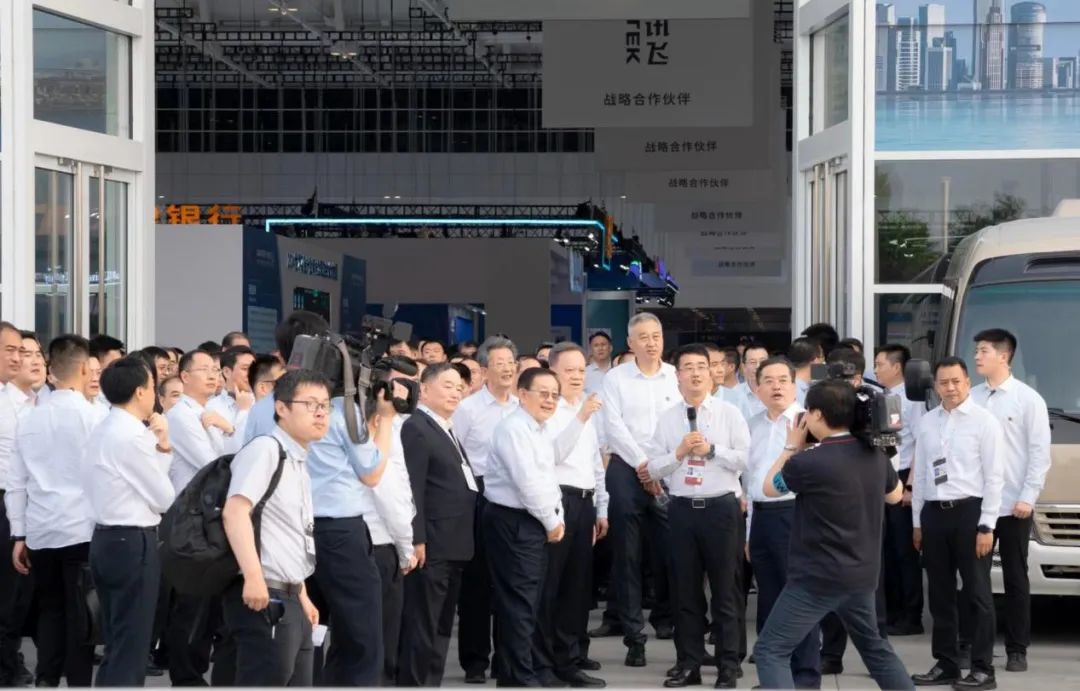 6月19日下午,天津市委书记陈敏尔,中国科学技术协会主席万钢,天津市委副书记、市长张工与参加本次博览会的重要嘉宾一同到访亿航智能展台参观考察,关切并详细了解亿航EH216-S无人驾驶载人航空器的技术优势、全球首证取得、商业部署应用、低空场景样板建设等方面的取得的工作成果。