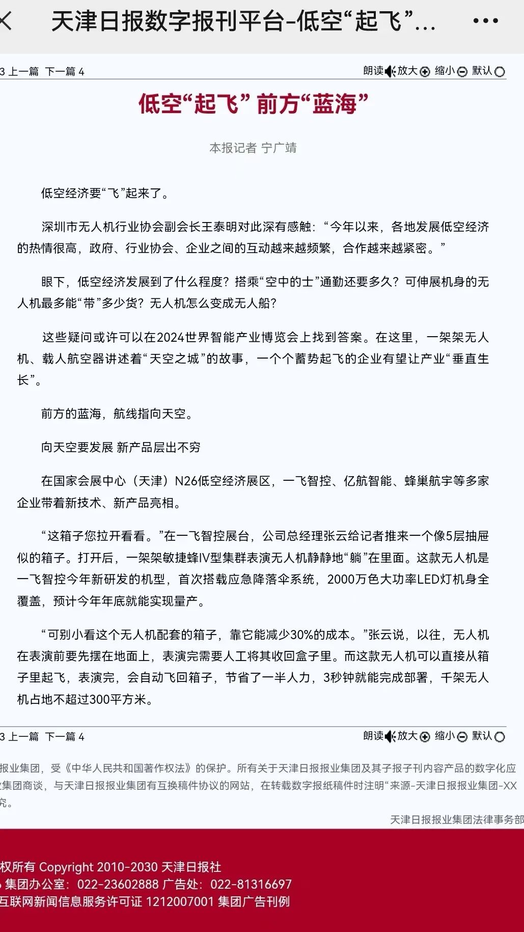 展会期间,一飞智控受到央视新闻、新华社、天津日报、津云、经开区等权威媒体深度采访。