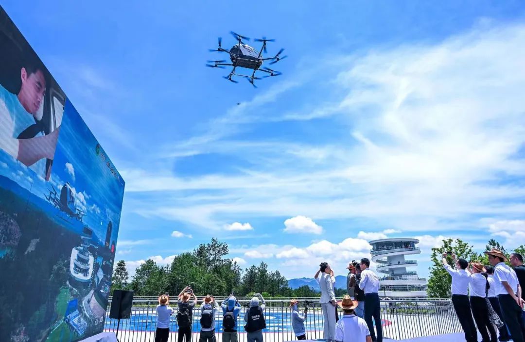 6月22日,EH216-S电动垂直起降(“eVTOL”)航空器在文成完成首次载人飞行,并正式启动“低空游文成”文旅IP。首飞仪式当天,浙江省、温州市及文成县相关领导和企业代表参加仪式,EH216-S搭载多名乘客在当地著名景区百丈漈飞云湖的天顶湖上空开展低空观光游览,从空中领略文成山水秀美景色。目前,百丈漈飞云湖景区已初步建设完成了EH216-S为主的起降场和配套消费区,接下来将逐步扩大在文成其他地方UAM运营中心等配套基础设施的规划与建设,为EH216-S开展空中观光游览服务做好准备,形成低空文旅的样板建设。