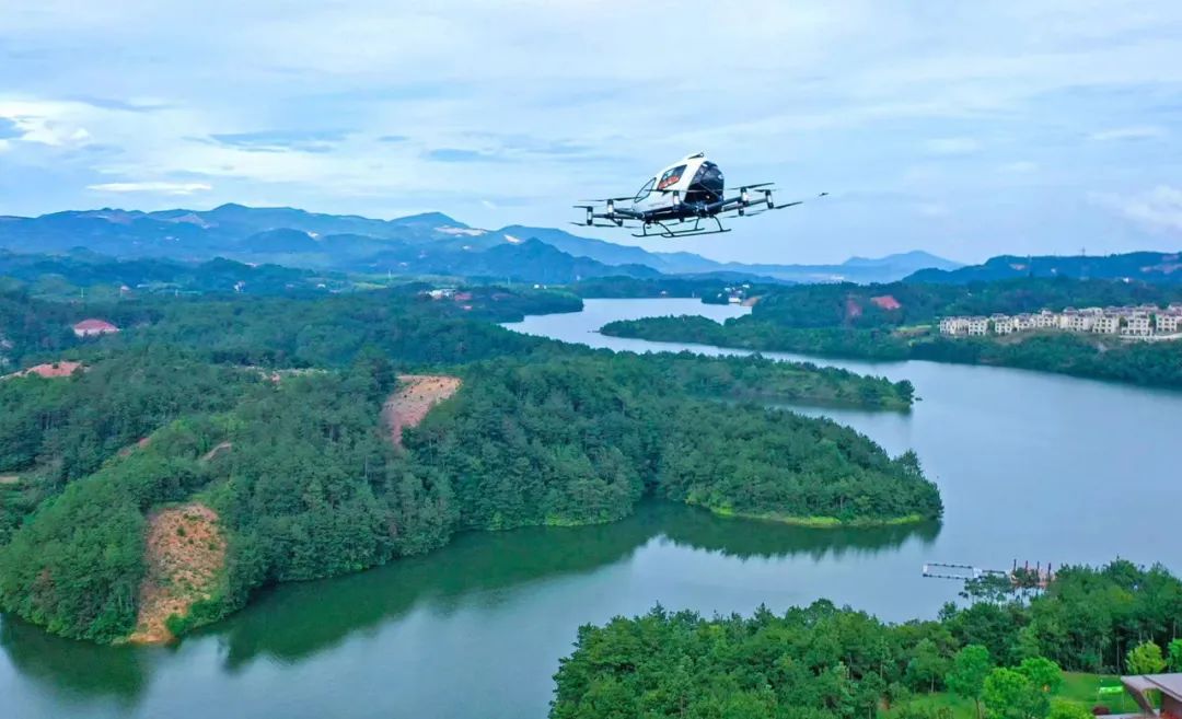 (图:EH216-S在百丈漈飞云湖景区完成文成县载人首飞)