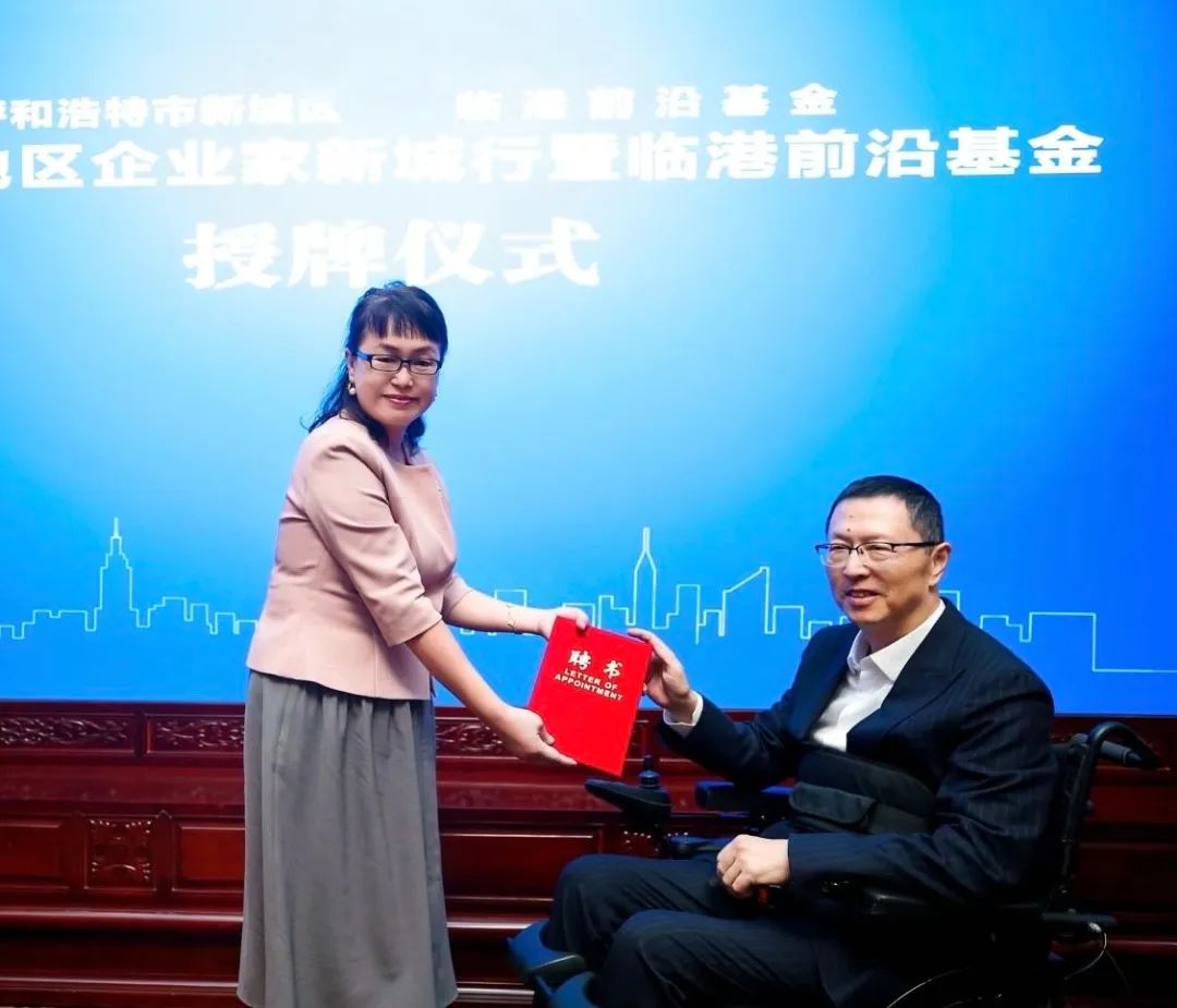 呼和浩特市政府副市长曹志为本支基金在光伏、新材料和氢能领域的三位特聘专家瞿晓铧博士、王锦山博士以及章俊良教授颁发聘书。