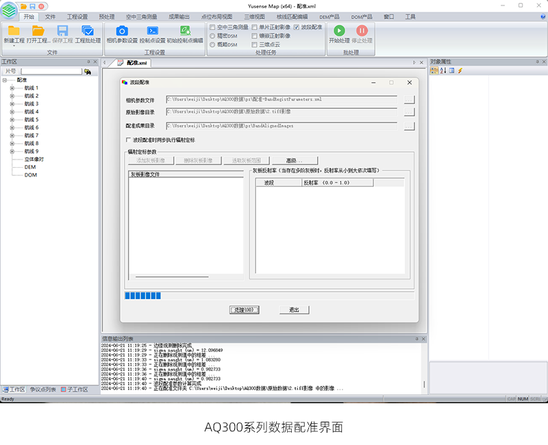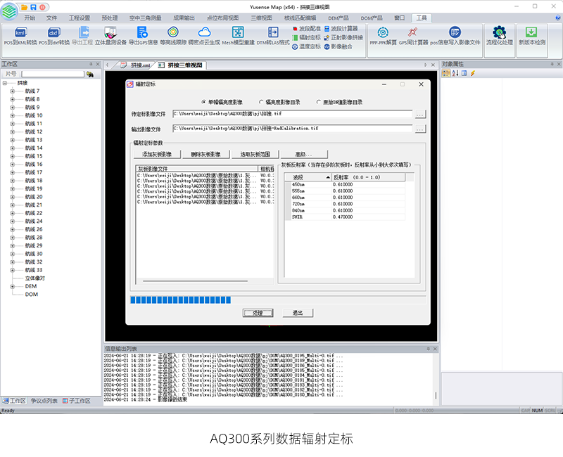 新增AQ300系列多光谱相机数据预处理功能,保证AQ300系列多光谱相机数据可正常执行辐射定标并得到多光谱正射拼接影像,处理过程与YUSENSE系列多光谱相机产品一致。