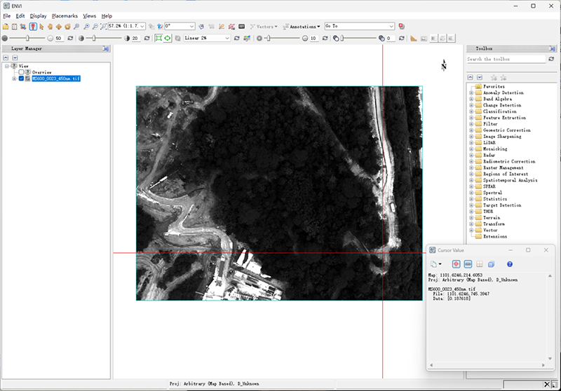 新增原始DN值影像单张反射率输出功能,可利用菜单栏工具——辐射定标的功能,完成原始DN值影像单张图像的辐射定标,基于该成果用户可完成单波段影像的拼接。