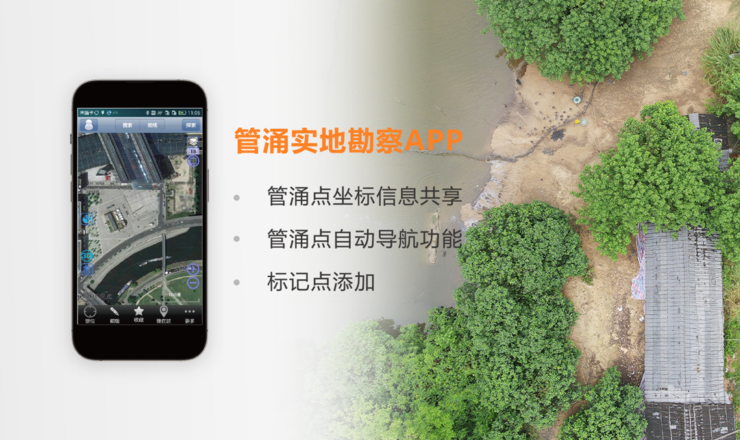 通过管涌实地勘察APP,指引人员去现场进行管涌点排查和处置,记录排查结果和情况,上报巡查结果。APP具备管涌点自动导航功能,共享管涌点坐标信息,添加标记点核实管涌情况。