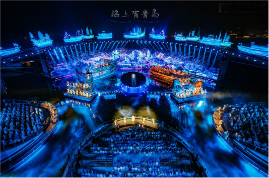 《海上有青岛》以齐鲁大地的千年沉淀为背景,在水火交融、光影变幻和天海映射间,鲜活演绎了青岛“因海而生、凭海而立、向海而兴”的传奇历程。