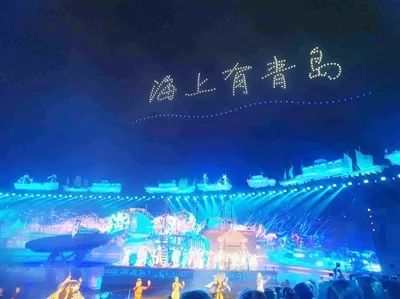 无人机编队与绚烂的烟火相互辉映,与台上恢弘的演绎相互融合,共同绘制了青岛乃至整个海洋的未来图景。