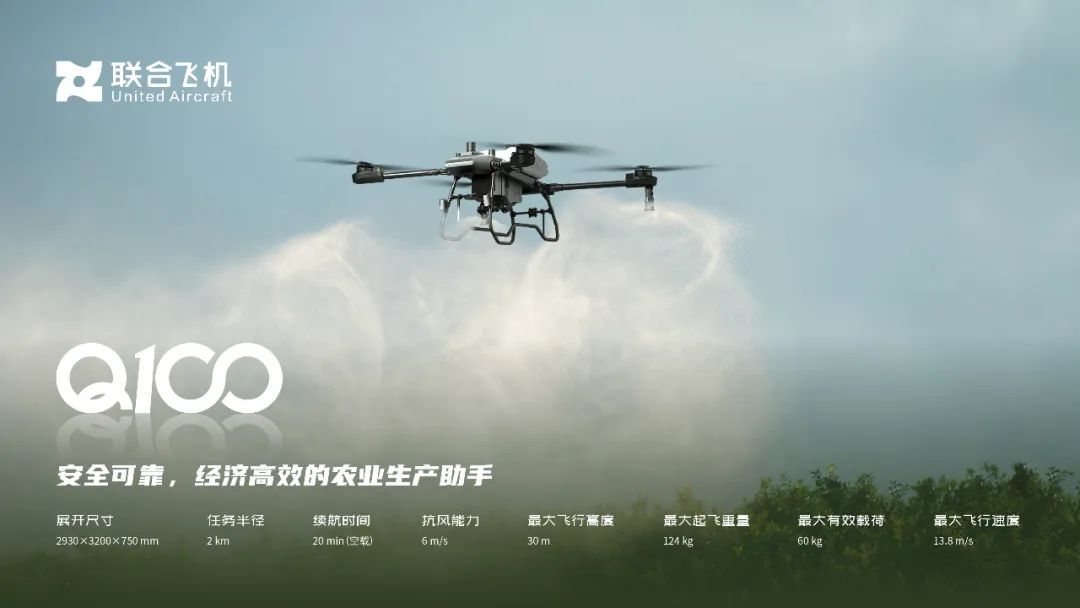 此次航展现场,联合飞机也正式宣告,Q100将从技术创新、市场拓展、服务模式与国际合作等方面,开启全球化发展新布局;与Q20和T1200组成农业无人机“三剑客”,以“大中小”飞行平台的协同,形成全新智慧农业解决方案,服务全球新农业,极大提升农作物的生长效率与精确性,为农业植保提供全生命周期的保障。