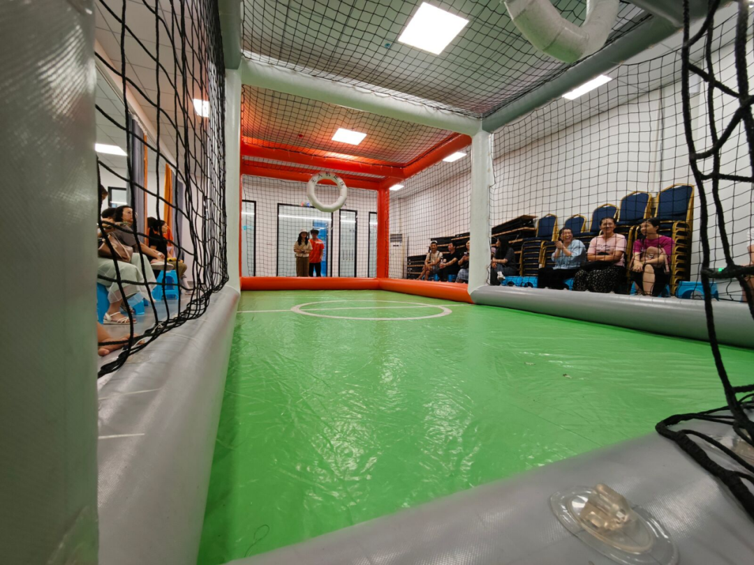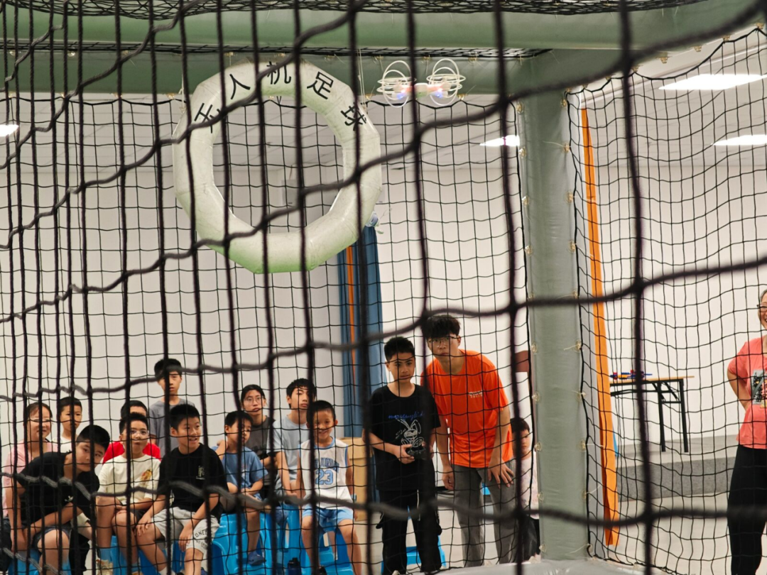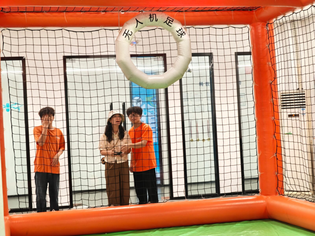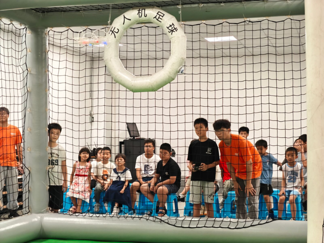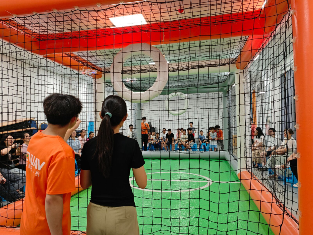 实操飞行练习环节更是热闹非凡,大人小孩携手共进为接下来的大人小孩足球无人机pk赛练习,他们手握遥控器,操控着无人机在赛道中自由翱翔。从最初的生疏到后来的熟练,每一次起飞、盘旋、降落都凝聚着大家的努力和汗水。