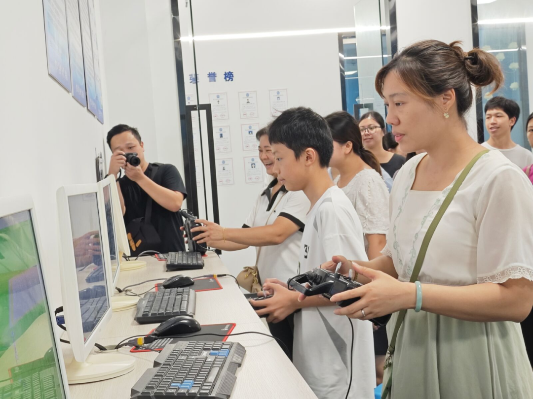 7 月 20 日,在镇新时代文明实践中心的指导下,塘角村联合镇宣传教育文体旅游办、镇关心下一代工作委员,组织 20 多组企业职工家庭及出租屋住户来到了东莞市异能无人机科普教育基地,共同探索航空及无人机领域的奥秘。