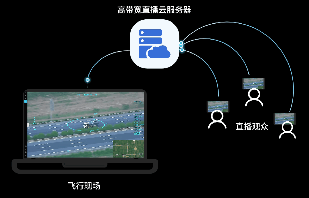STARRY支持在实时飞行过程中进行实时画面直播,现场作业人员可将直播二维码或链接分享至微信等平台,远端通过扫描二维码打开链接即可观看实时直播画面。