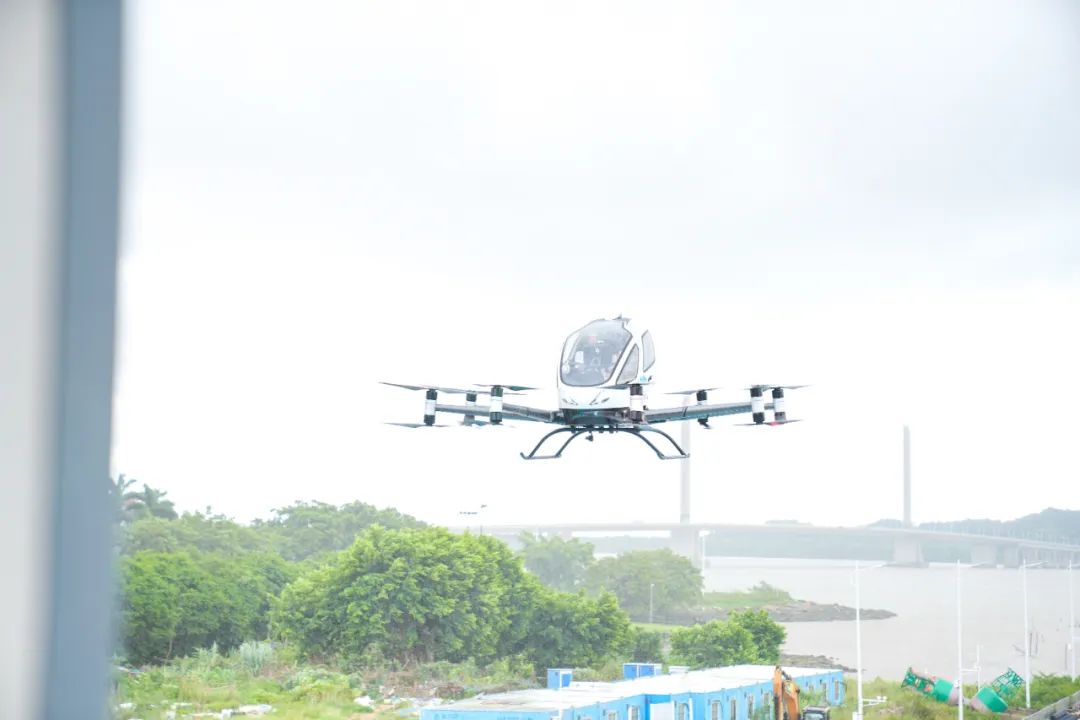 图:EH216-S无人驾驶载人航空器在珠海唐家港活动现场进行了载人飞行