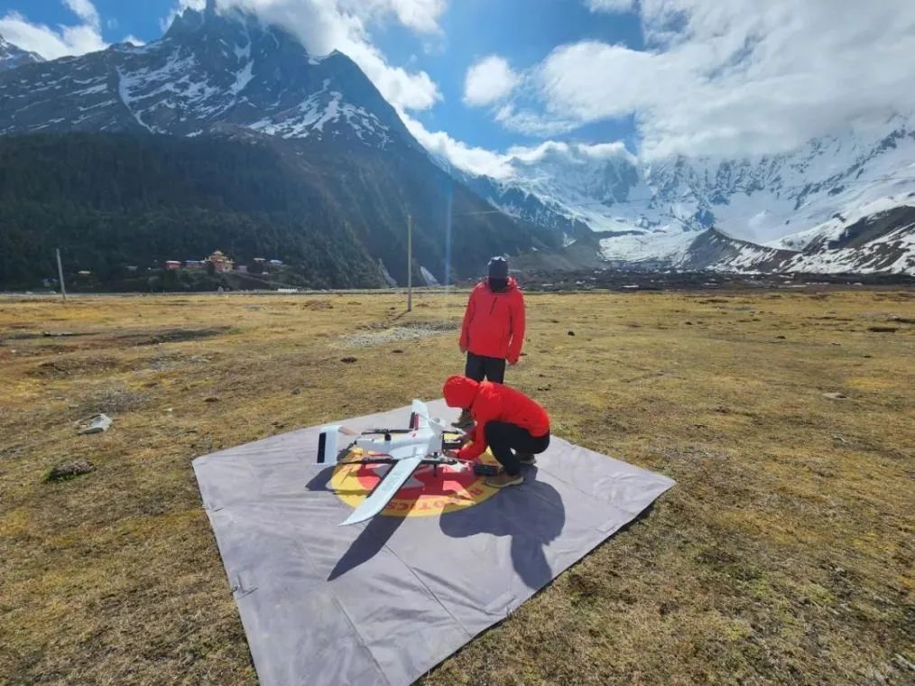 在此次飞行任务中,无人机实际起飞海拔4020米,垂直升限高度达3021米,作业高度海拔达到7041米,共飞行10个架次,顺利完成约70平方千米的作业任务,探索出一套适合在高海拔复杂地形、高寒缺氧等特殊环境下执行无人机飞行任务的技术流程和操作方法。