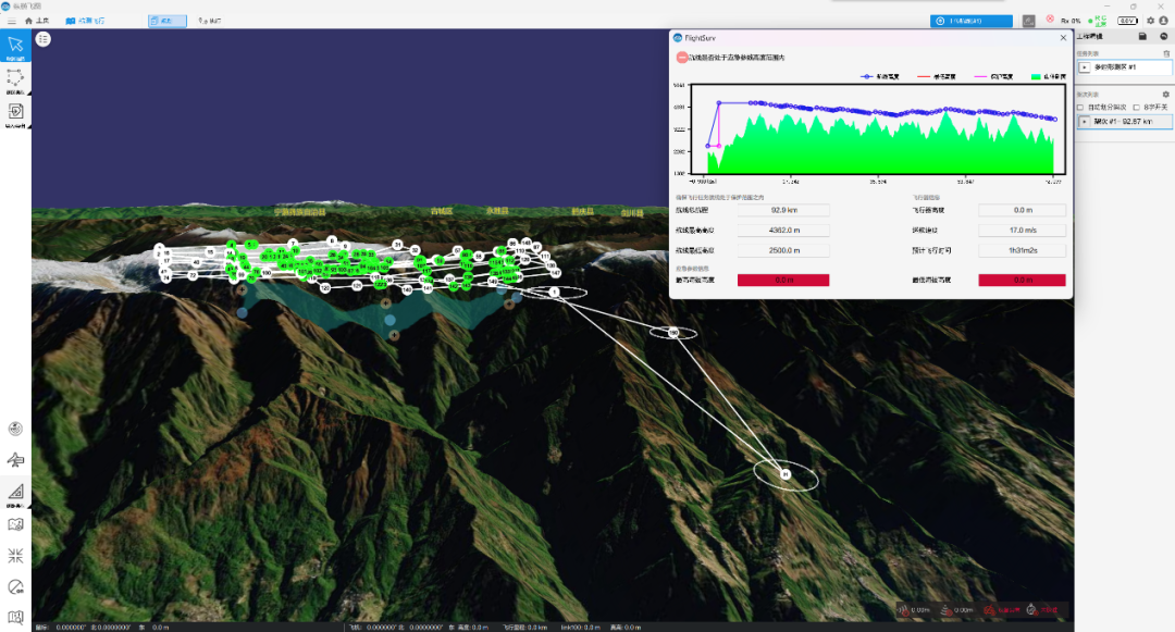 “飞行海拔最高的一个架次对应地形高差超过1300米,飞机爬升高度达2000米。”负责本次飞行的张工告诉小编,整个任务难度系数高,同时还要保证点云数据质量,对飞行技术、无人机和激光雷达的整体性能提出了较高的要求。
