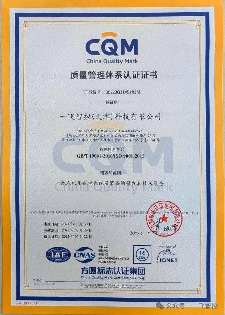 未来,一飞智控将继续深化管理体系,不断提升服务质量,加强技术创新,更好的地服务于客户,实现企业的长远发展和行业的持续领先!