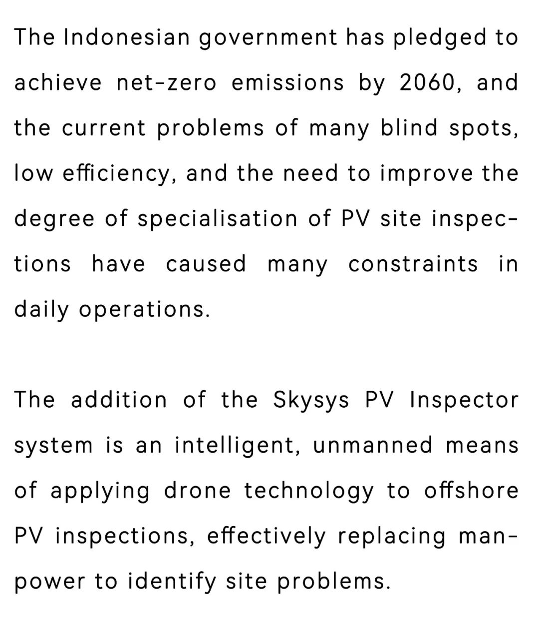 印尼政府此前承诺到2060年实现净零排放,而当前海上光伏场站巡检盲区多、效率低、专业化程度亟需提升的问题让日常作业存在诸多掣肘。星逻驭光的加入,则是将无人机技术深度应用到海上光伏巡检的一种智能化、无人化手段,依托无人机空中纵览,有效代替人力发现场站问题。