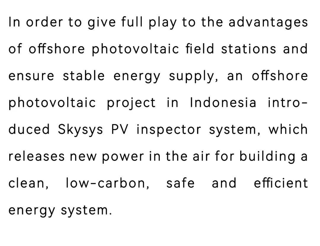 为充分发挥海上光伏场站优势,保障能源供应稳定,印尼某海上光伏项目引进了星逻驭光无人机光伏巡检系统,为构建清洁低碳、安全高效的能源体系释放空中新力量。