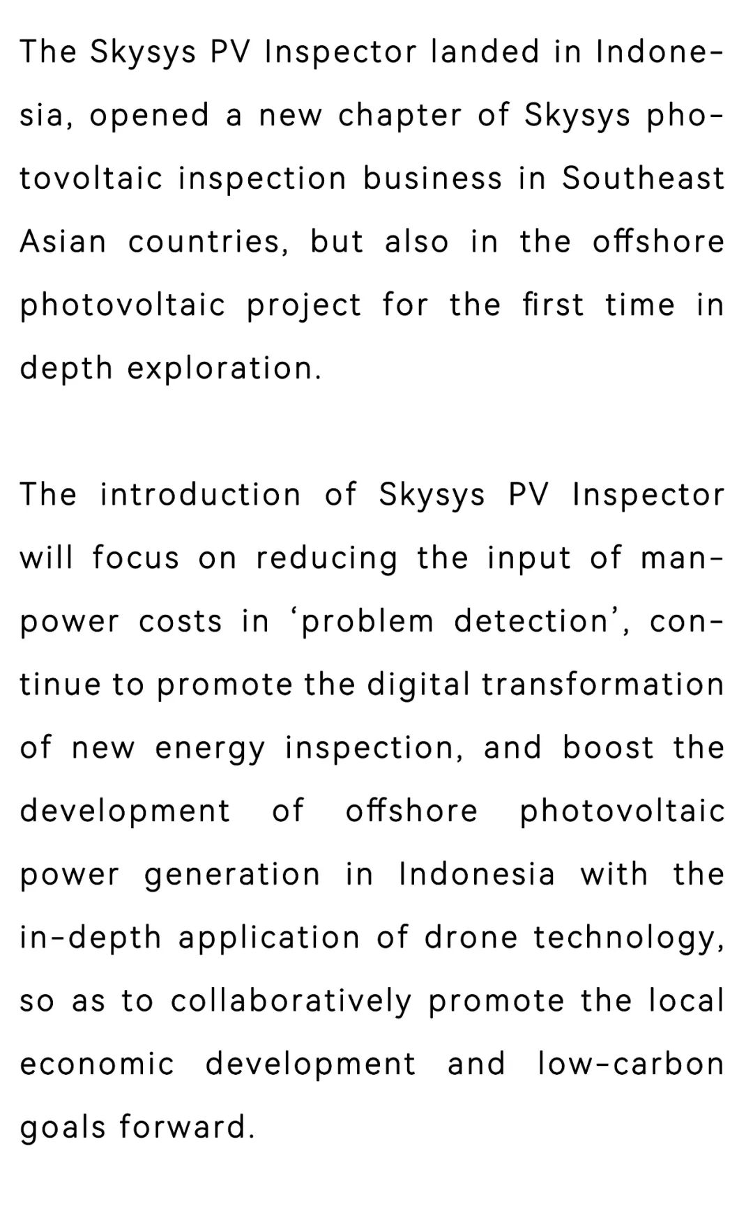 此次星逻驭光落地印尼,开启了星逻光伏巡检业务在东南亚国家落地的新篇章,也是在海上光伏项目中的首次深度探索。星逻驭光的引入,将着力降低人力成本在“发现问题”中的投入,持续推进新能源巡检的数智转型,以无人机技术的深度应用助推印尼海上光伏发电向“新”发展,协同推动当地的经济发展与低碳目标向前迈进。