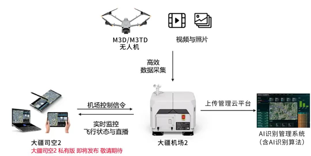 大疆机场+AI软件(AI算法+AI自主识别)+综合管理平台+可视化指挥调度