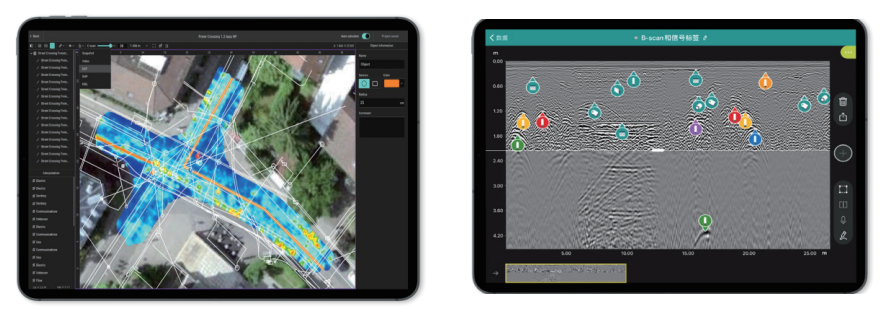 • 针对地下管线检测,现场可直接在自由路径扫描的地图视图中进行实时管道绘制,数据更加直观清晰。