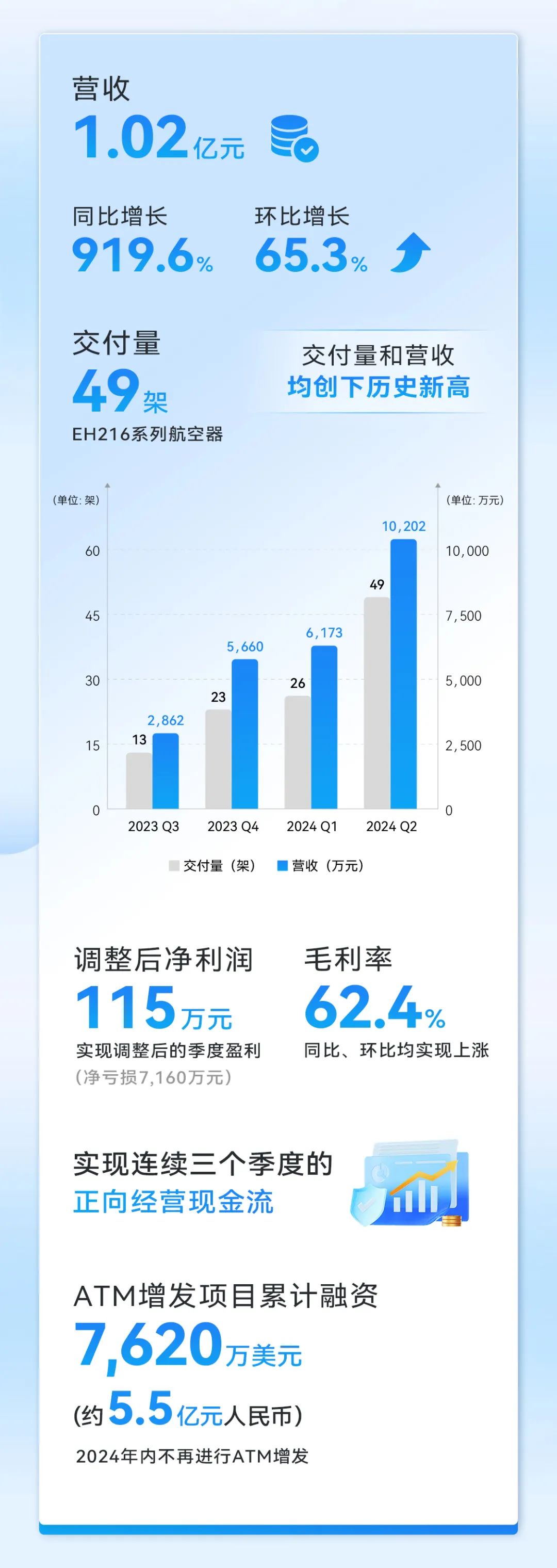亿航智能24Q2财报:营收同比增长9倍,调整后扭亏为盈!