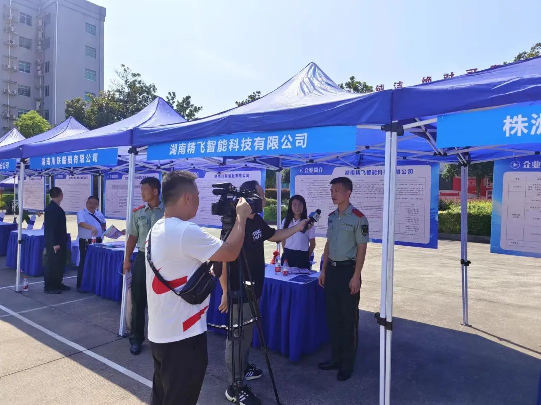 此次招聘会的热烈反响,不仅彰显了精飞集团株洲分公司的社会责任感与品牌影响力,也赢得了广大退役军人及家属的高度认可与好评。活动期间,株洲广播电视台的记者们更是以精飞集团的招聘窗口为背景,进行了深入的现场采访与宣传报道,将这一军企合作的典范案例传递给更多观众,进一步扩大了活动的社会影响力。