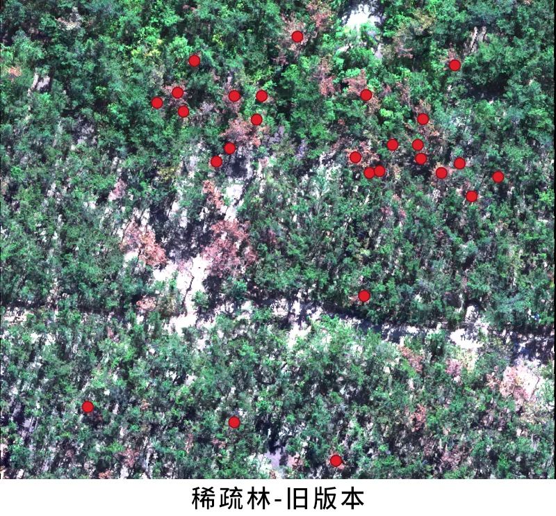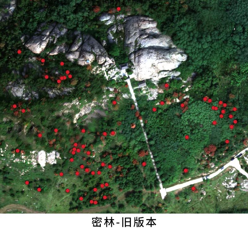 基于积累的松材变色立木正负样本优化算法结构,增强变色立木目标特征,降低裸土、阴影、林隙中林下复杂目标的干扰,从而减少误提;同时丰富图像学算法要素,降低“异物同谱”产生的漏提。