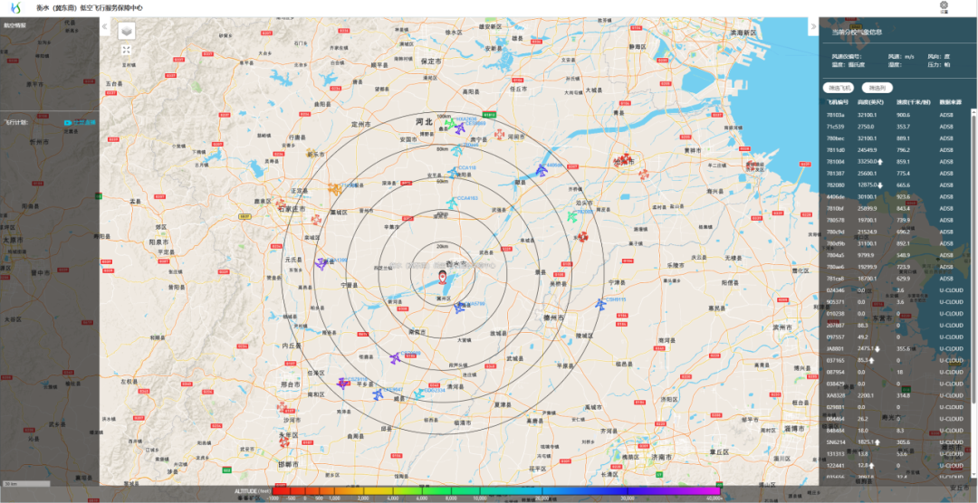 每秒钟两次位置刷新,总局、塔台和空中飞行员可远程监测飞机轨迹,危险接近预警及数据实时同步。
