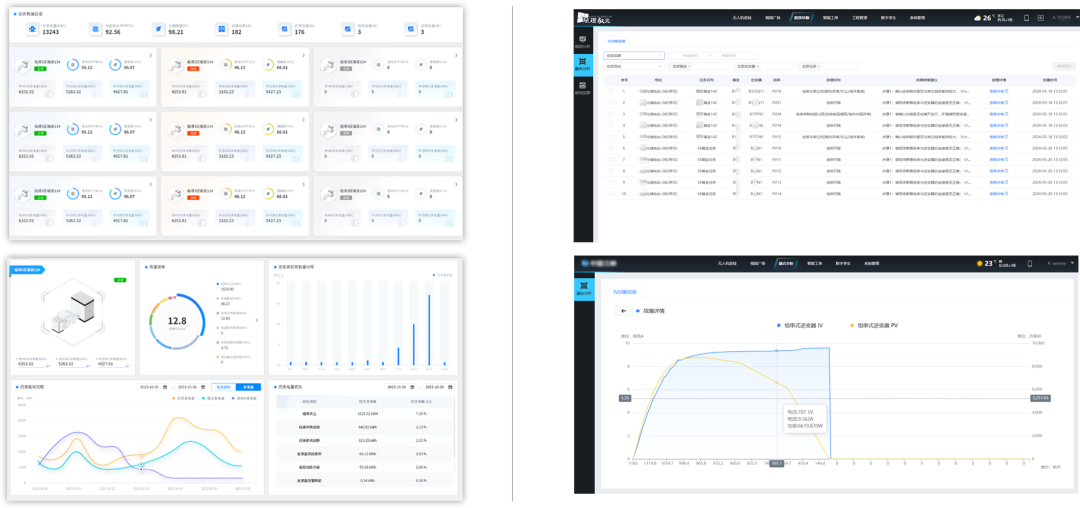 (3)融合分析∶针对箱变、逆变器、组串等设备进行IV、CV检测及融合分析,系统会自动识别故障类型并给出修复建议。对于故障区域,系统能够规划无人机复检航线,确保问题得到及时处理。