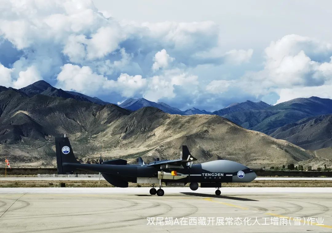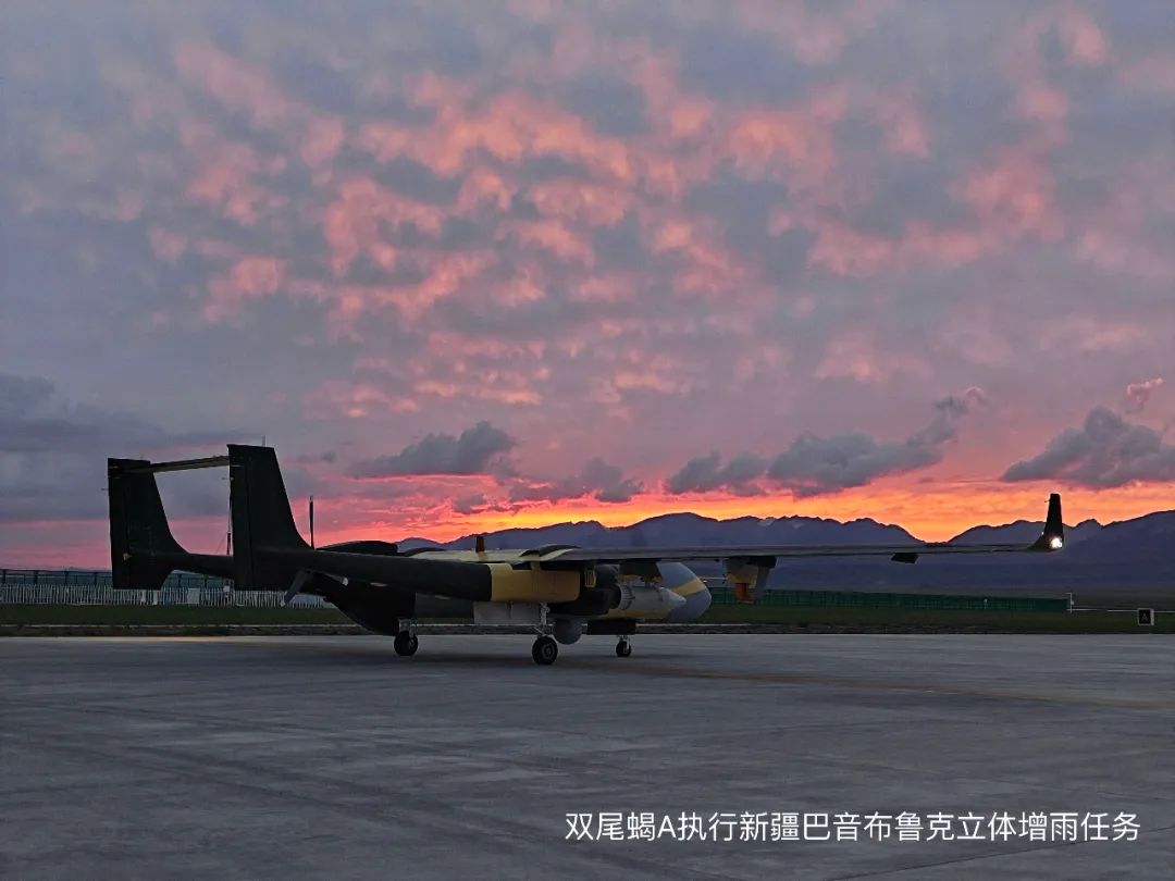 近年来,双尾蝎人工影响天气型无人机为抗旱防雹曾奔赴川、黔、甘、藏、滇、晋等气候行动最前线实施“弄云调雨”,是首架在西藏地区开展人影作业的飞机;为增雨灭火曾驰援8·27宜宾、3·15雅江山火扑救第一线开展“穿云布雨”,应急人影效果获得当地气象部门认可。2024年,该无人机继续启航,3至6月入驻贵州实施保耕抗旱、土壤增墒,6月驰援河南进行应急抗旱、联合作业,7至10月进驻西藏开展增雨增雪、生态修复,8至9月远赴新疆完成向天借水、耕云播雨……