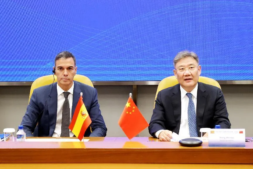 西班牙首相桑切斯与中国商务部部长王文涛共同出席中西企业顾问委员会开幕式并致辞