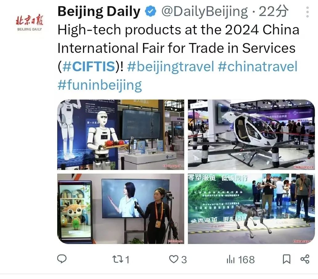 为期五天的北京服贸会,不仅是全球服务贸易交流沟通的平台,也成为了发掘新事物、了解新产业的窗口。亿航智能的无人驾驶eVTOL产品已经在全球16个国家完成了超过5万架次的安全飞行。此次EH216-S在北京服贸会的亮相,让低空经济离消费者更进一步,让城市空中交通的普及应用走进寻常百姓家。