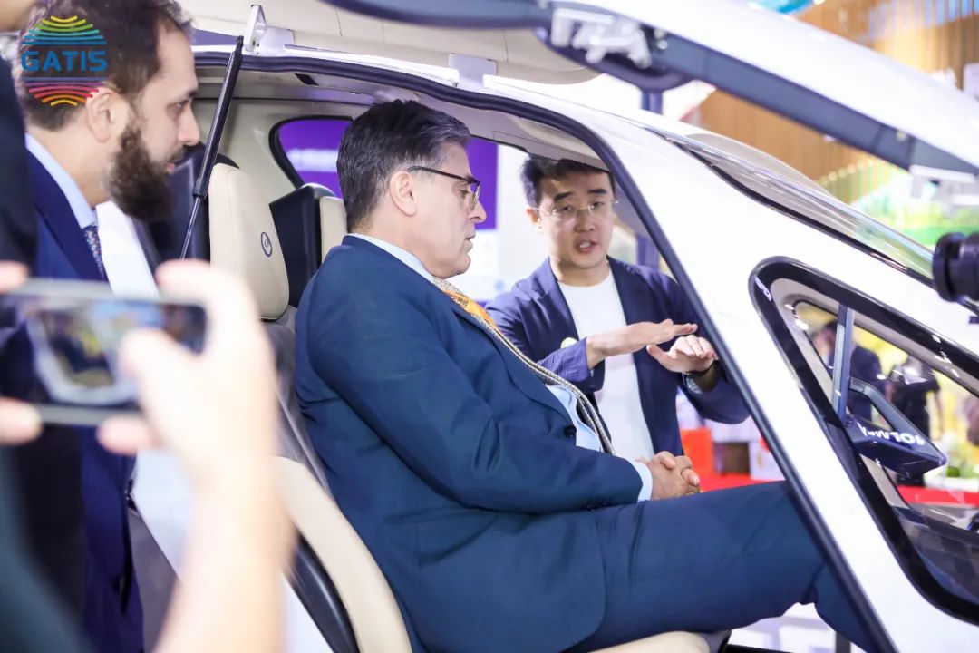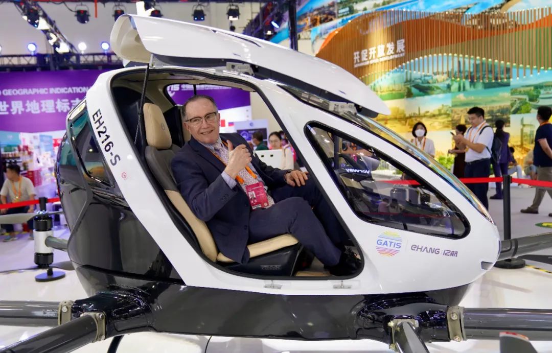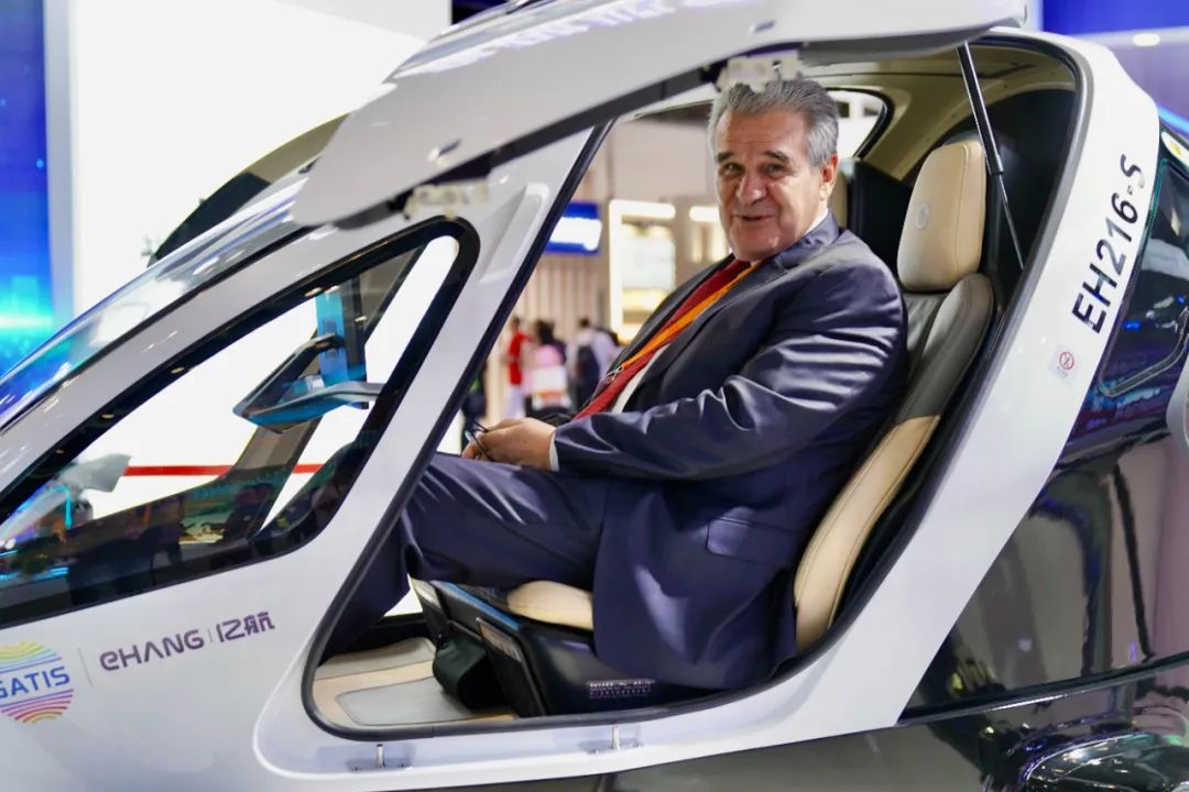 联合国原副秘书长、国际绿色经济协会荣誉主席沙祖康在展台试乘EH216-S航空器后,大为赞赏以绿色低碳为发展目标的新型交通业态。他表示,积极应对气候变化,是世界各国的共同目标和行动。推动产业结构能源结构绿色低碳发展,打造具有全球竞争力的绿色产业链供应链是重要举措,也是推动经济高质量可持续发展的必然选择。