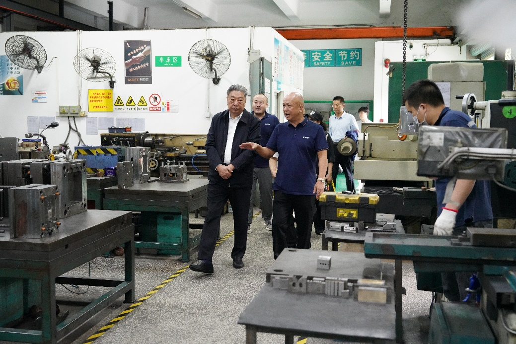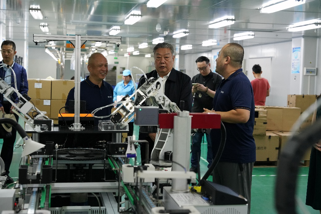 林左鸣理事长首先参观了高巨创新的生产车间,详细了解了公司在精密制造领域的生产流程、设备配置及技术应用。通过自主研发的自动化生产技术,高巨创新实现了无人机从设计到生产的全流程自主化,年产量达百万台。林左鸣理事长对公司在智能制造领域的自主创新表示认可,认为高效的制造能力是推动低空经济发展的核心要素,也为行业技术升级提供了示范。