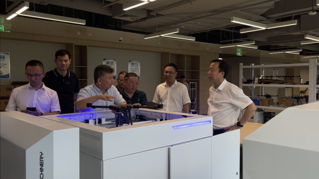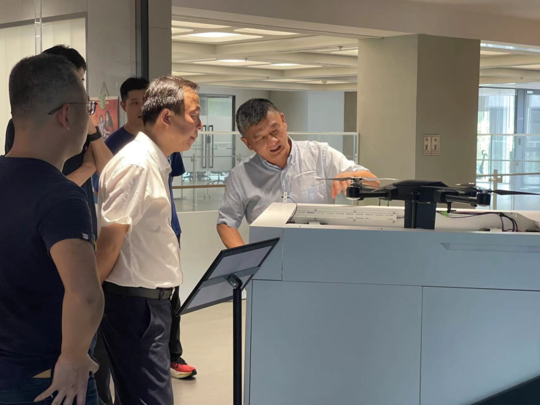 在昊舜视讯董事长陆福明及CEO王洪兵的陪同下,王牮区长一行首先参观了公司的产品展示区与研发中心。展示区内,昊舜视讯自主研发的无人机巡检设备、高清视频传输系统以及智能识别与分析技术等核心产品熠熠生辉,吸引了领导们的广泛关注。技术人员逐一介绍了各项技术的核心优势与应用场景,王牮区长一行亲自体验了无人机巡检技术的实际操作,对其高效、精准的性能表示高度赞赏。