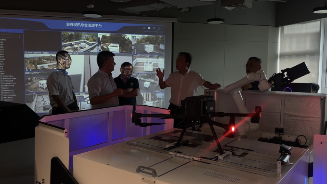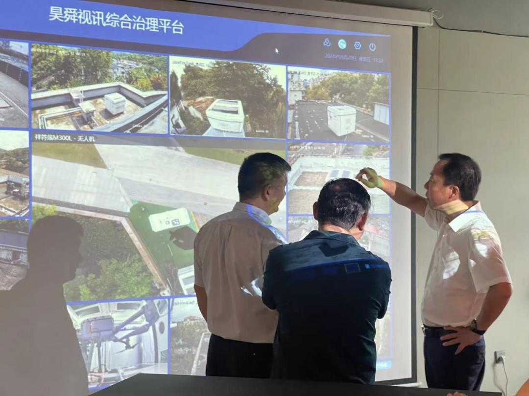 随后,双方就无人机技术在智慧城市建设中的应用前景展开了深入交流。陆福明董事长详细介绍了昊舜视讯的发展历程、科研成果及在无人机巡检、智慧安防等领域的成功案例与解决方案。他表示,昊舜视讯始终致力于技术创新与产业升级,愿与余杭区政府携手合作,共同探索无人机技术在城市治理、应急响应等方面的创新应用,为余杭区的智慧城市建设添砖加瓦。