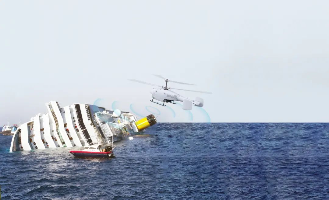 面对中国辽阔的海洋疆域与复杂多变的海洋环境,TD550大载重无人直升机以其高效能动力系统与轻量化结构设计,实现了超长续航与重载能力的双重突破,成为海上监测、探测及搜救任务的得力助手。其先进的自主飞行控制系统与高精度导航避障技术,确保了在海水盐度、温度变化及海流等恶劣多变的环境和海浪、海雾等极端天气下的稳定作业;与地面控制站之间稳定、实时、安全的数据传输能力,则为海上作业提供了坚实的信息保障。