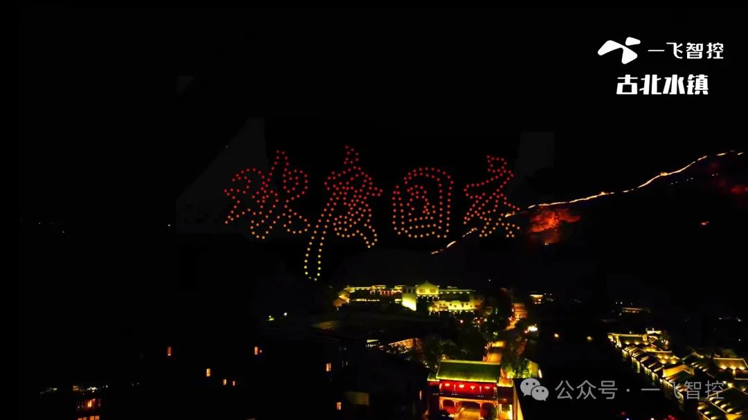夜幕下的古北水镇,司马台长城的雄姿与无人机编队表演交相辉映,共同绘制了动人心魄的画卷。无人机在空中描绘的“司马长城”图案,不仅重现了这一历史奇迹的宏伟,更是对中华民族坚不可摧、绵延不息的民族精神的深刻体现。“欢度国庆”“天安门城楼”“祖国万岁”等图案,则蕴含着对祖国未来的美好祝愿。